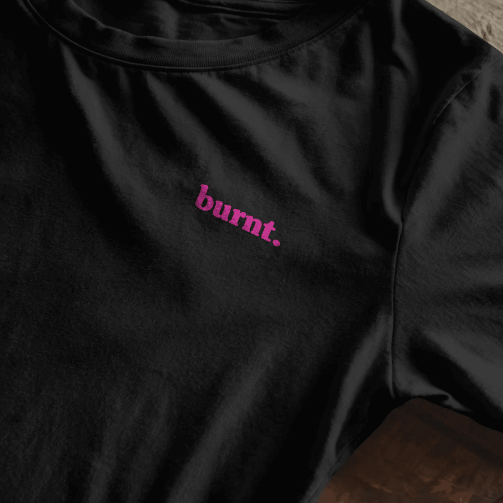 – Front placement moves the undiagnosed. print to the chest, with the small BURNT logo placed on the rear below the neckline.