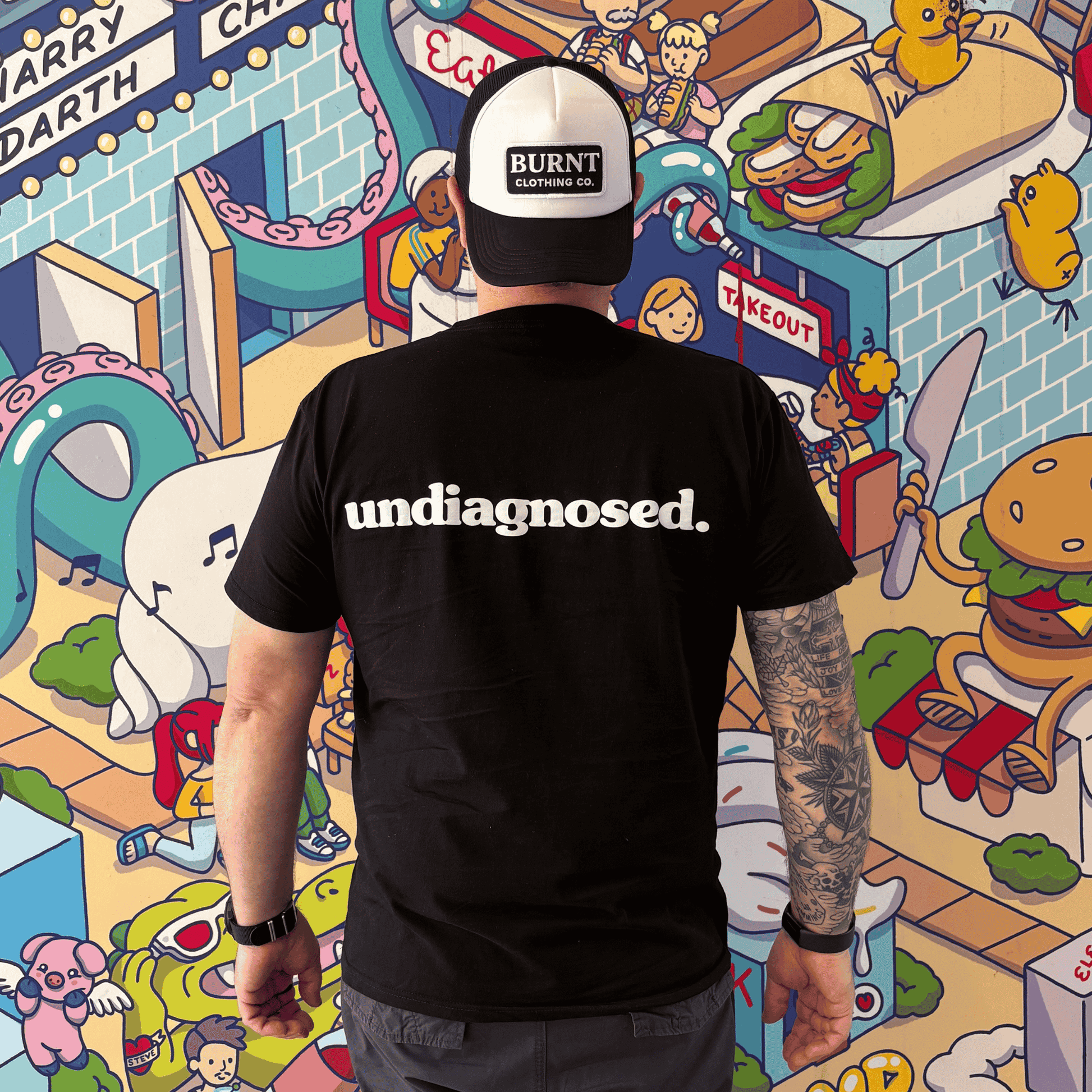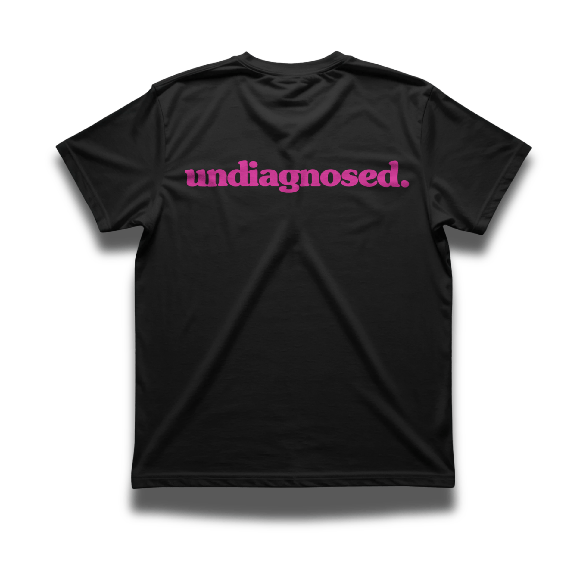 A clean black tee featuring the undiagnosed. statement in bold pink.